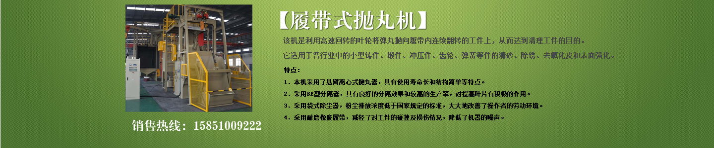 公司主要產(chǎn)品有各種型號拋丸機(jī)、履帶式拋丸機(jī)、吊鉤式拋丸機(jī)、懸鏈?zhǔn)綊佂铏C(jī)、通過式拋丸機(jī);各種型號鑄鋼丸、鋼砂、合金鋼丸、強(qiáng)化鋼丸、不銹鋼丸;噴砂設(shè)備;環(huán)保除塵設(shè)備;鑄造設(shè)備;高效拋丸器;各種型號拋丸機(jī)配件等,并可根據(jù)用戶產(chǎn)品及產(chǎn)量需求設(shè)計符合要求的拋丸機(jī);本公司產(chǎn)品從設(shè)計、開發(fā)、生產(chǎn)到服務(wù),全過程實(shí)行監(jiān)控,其產(chǎn)品在全方位立體的營銷服務(wù)網(wǎng)絡(luò)中,遍布全國各省市區(qū)。